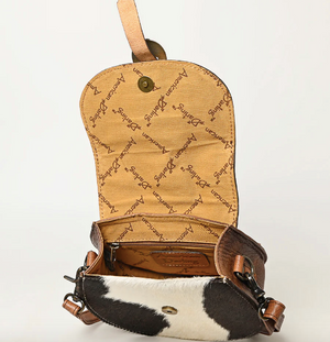 Introducing the Claire Purse - hand tooled and painted with exquisite detail, this purse is made from high quality full grain leather. The soft and supple leather ages beautifully, while the cowhide hair-on adds a unique and western touch. Complete with adjustable shoulder strap and reliable YKK zipper closure.