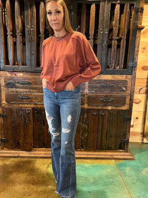 Farewell HR Distressed Denim jeans offer the perfect combination of comfort and style. Cut for a high-waisted and fitted look, with 92.5% cotton, 5.5% polyester, and 2% spandex, they offer a stretch and shape that flatters all body types. Featuring distressed detail and insert paneling, these jeans are finished with a released hem and flare leg style for a modern, contemporary look. Model is 5'9'' wearing size 27.
