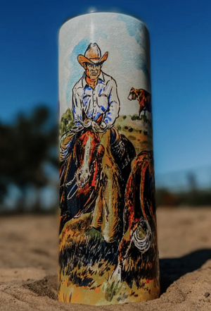 20oz Skinny Tumblers!! These are the ABSOLUTE BEST!!!! Designed right here by The Herd and manufactured just for us! They come with a clear lid and a plastic straw! Keep those drinks cold or hot, the western way!