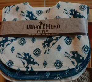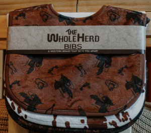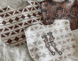 Keep your cowbabes clean and stylish with these adorably western bibs! Super soft and buttery, these bibs will protect the cutest outfits while still keeping it chic. Get the perfect look with a 3-pack of bibs — pair 'em up with a snuggly sleeper or jogger for some supercute vibes! Yee-haw!