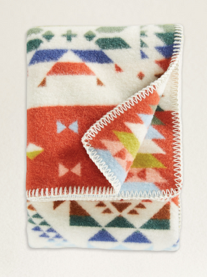 Made in America of our softest pure virgin wool, this child-sized blanket is a treasured gift (and customizable with embroidery for a personal touch). The exclusive design is inspired by the summer wildflowers of the Appalachian Plateau, and expertly woven in our Pendleton, Oregon, mill for beauty that can blossom for a lifetime.