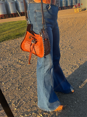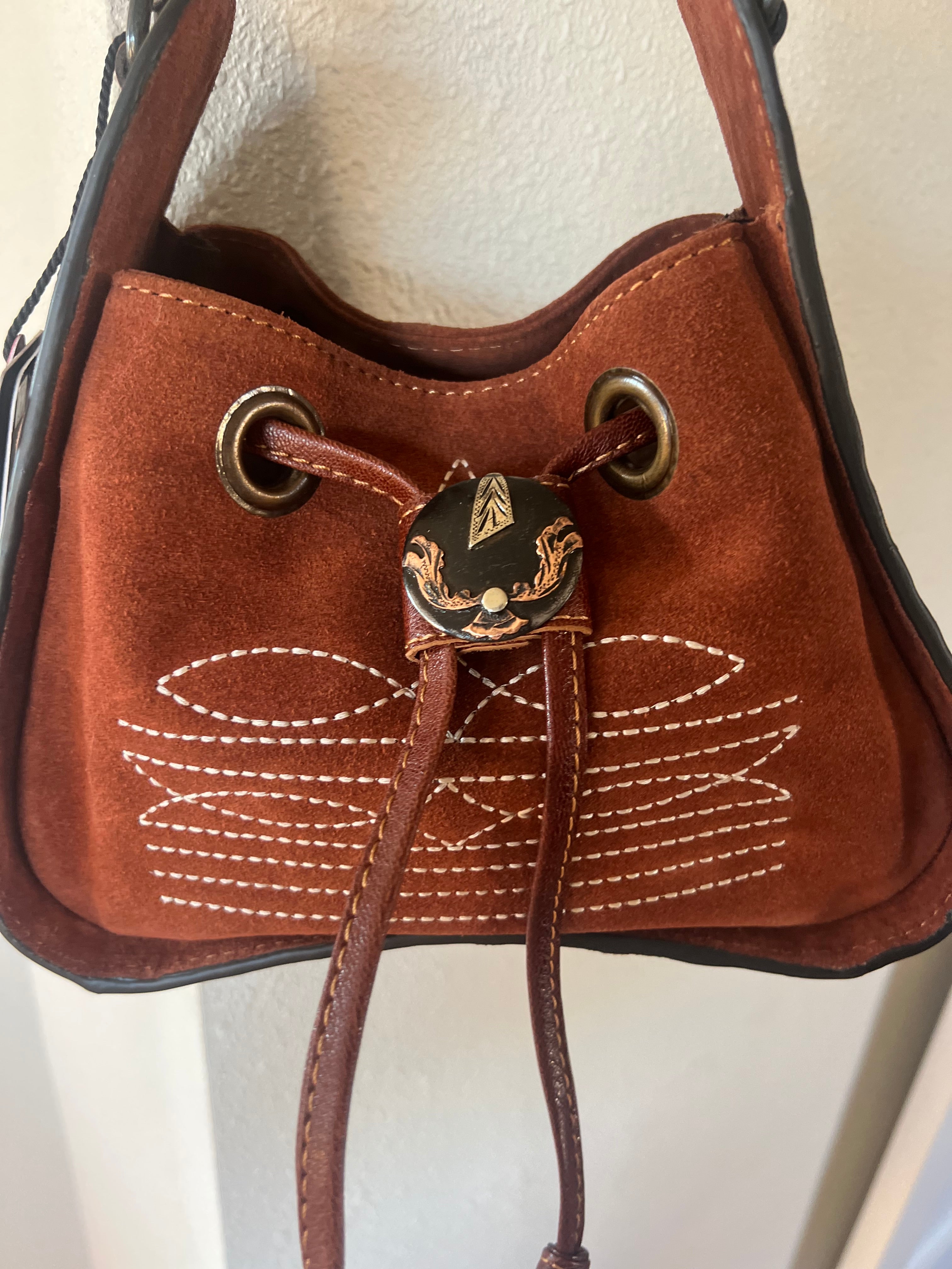 The most adorable authentic suede and leather cross body purse. We think it looks like a little stirrup— perfect for a subtle hint of horse vibes in your wardrobe.