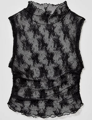The classic lace layering top to dress up any outfit! Sleeveless.