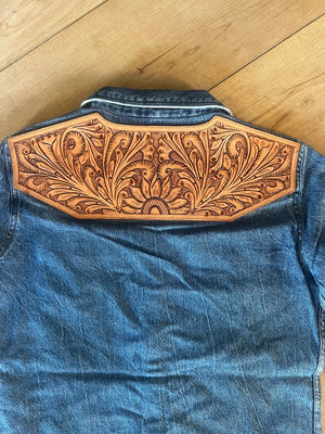 The authentic leather patch adds a sophisticated feel to this retro denim shirt. Excellent quality denim and leather with pearl snaps. Rugged, retro, and endlessly versatile—this shirt brings the spirit of the old west into today’s wardrobe.