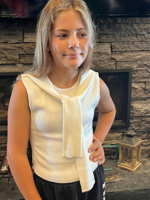 Add a touch of sophistication to your wardrobe with our Marsie Sleeveless Sweater. Designed with a unique tie detail and made from quality fabric, this top is expertly stitched for a flawless fit. Available in both black and white, elevate your style with this sleeve tie detail sweater top.