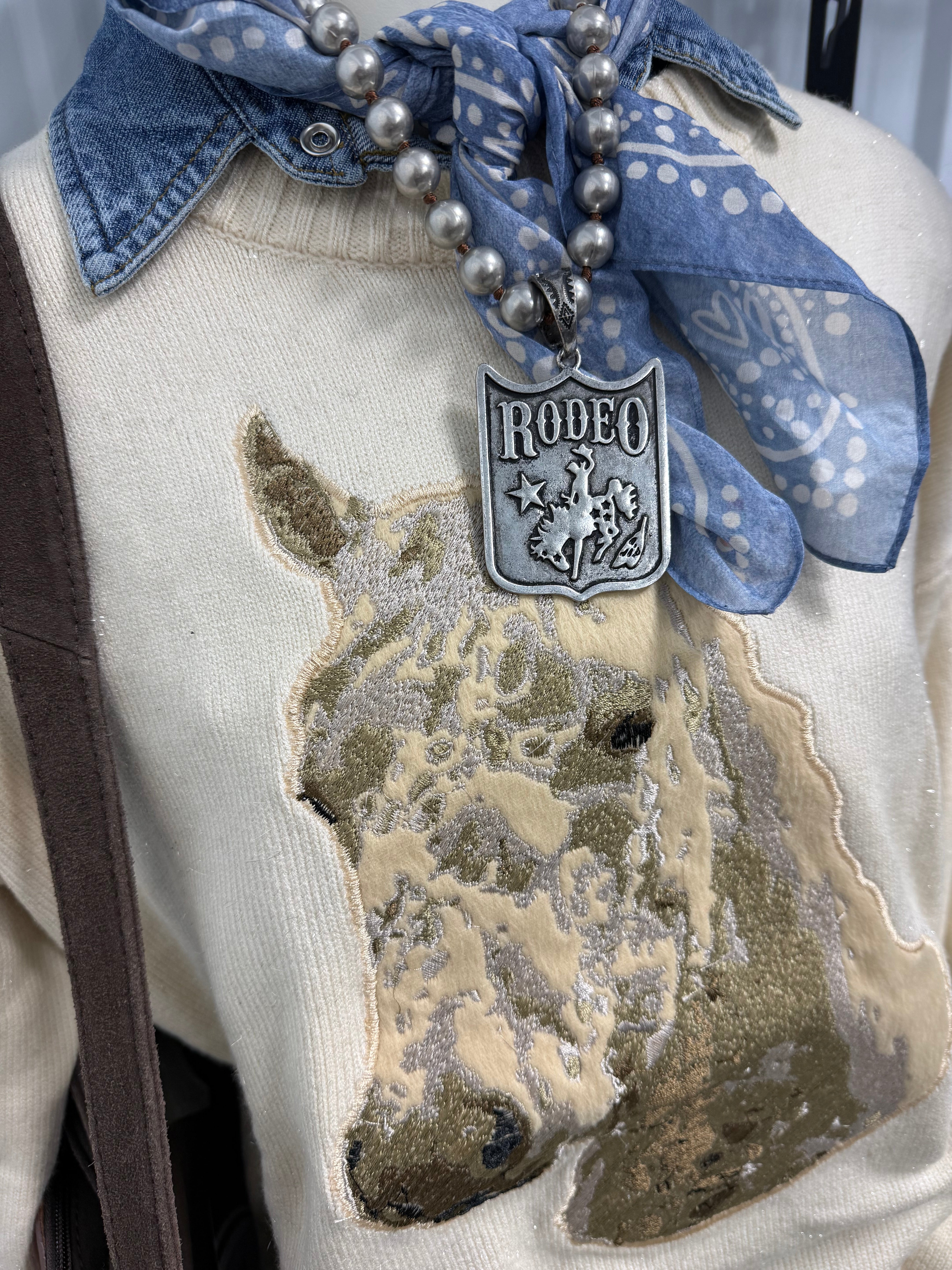 Round Neck Horse Embroidery Sweatshirt