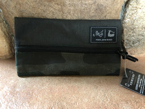 Our designers ensure that each handcrafted Waxed Canvas Camo bag comes with a onyx zipper and leather cord.